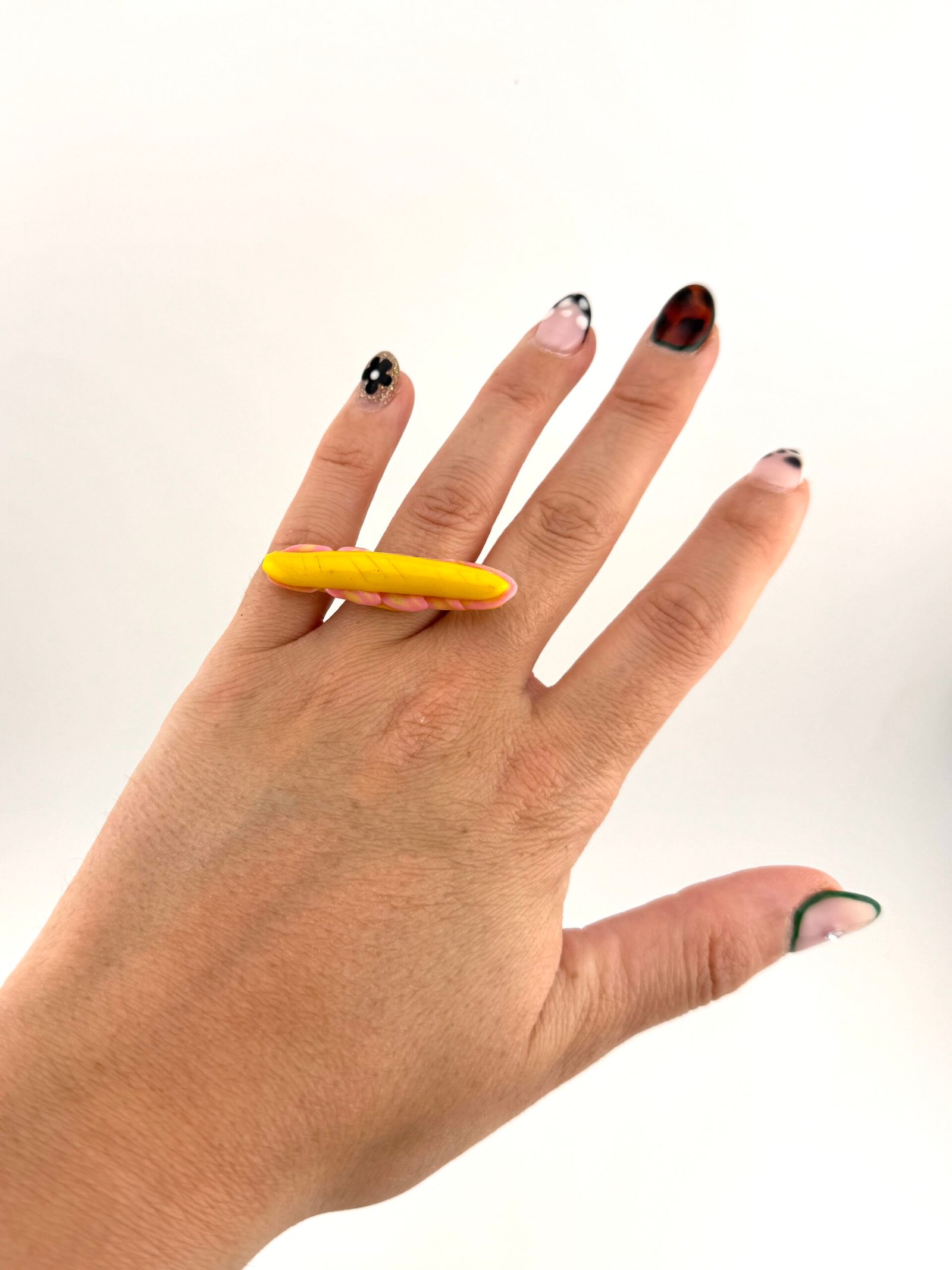 Handmade ring made of polymer clay, recycled plastic and resins.