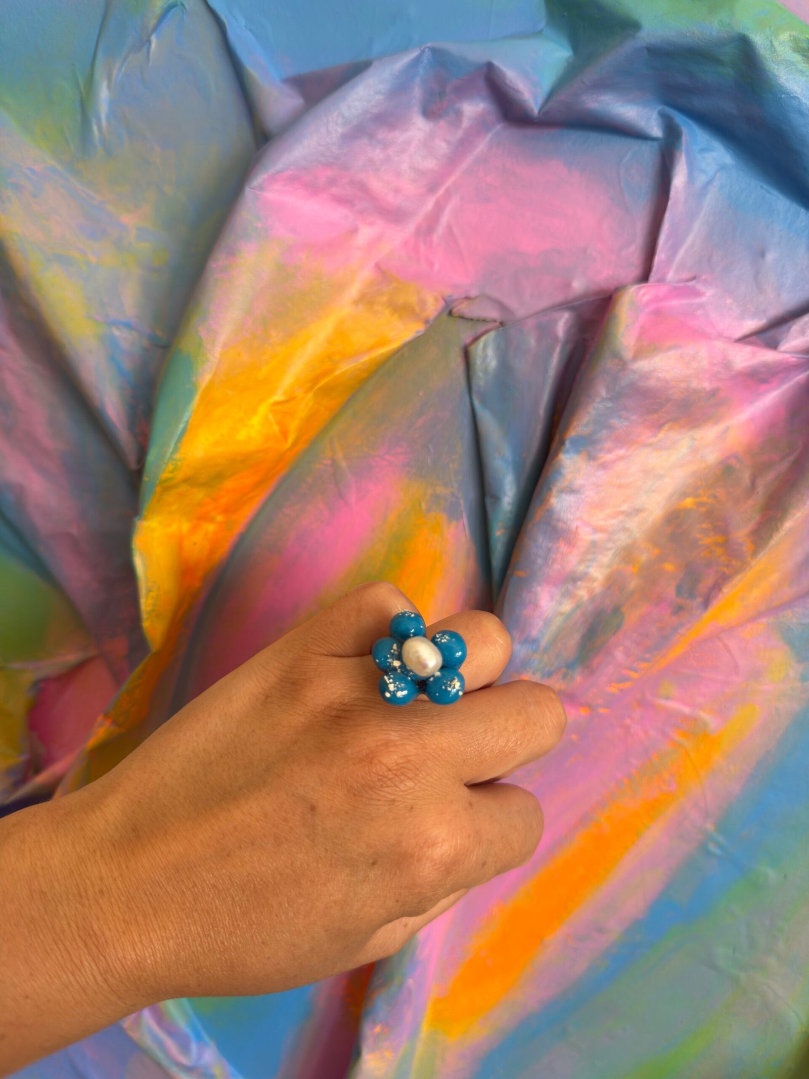 Handmade ring made of polymer clay, recycled plastic and resins.