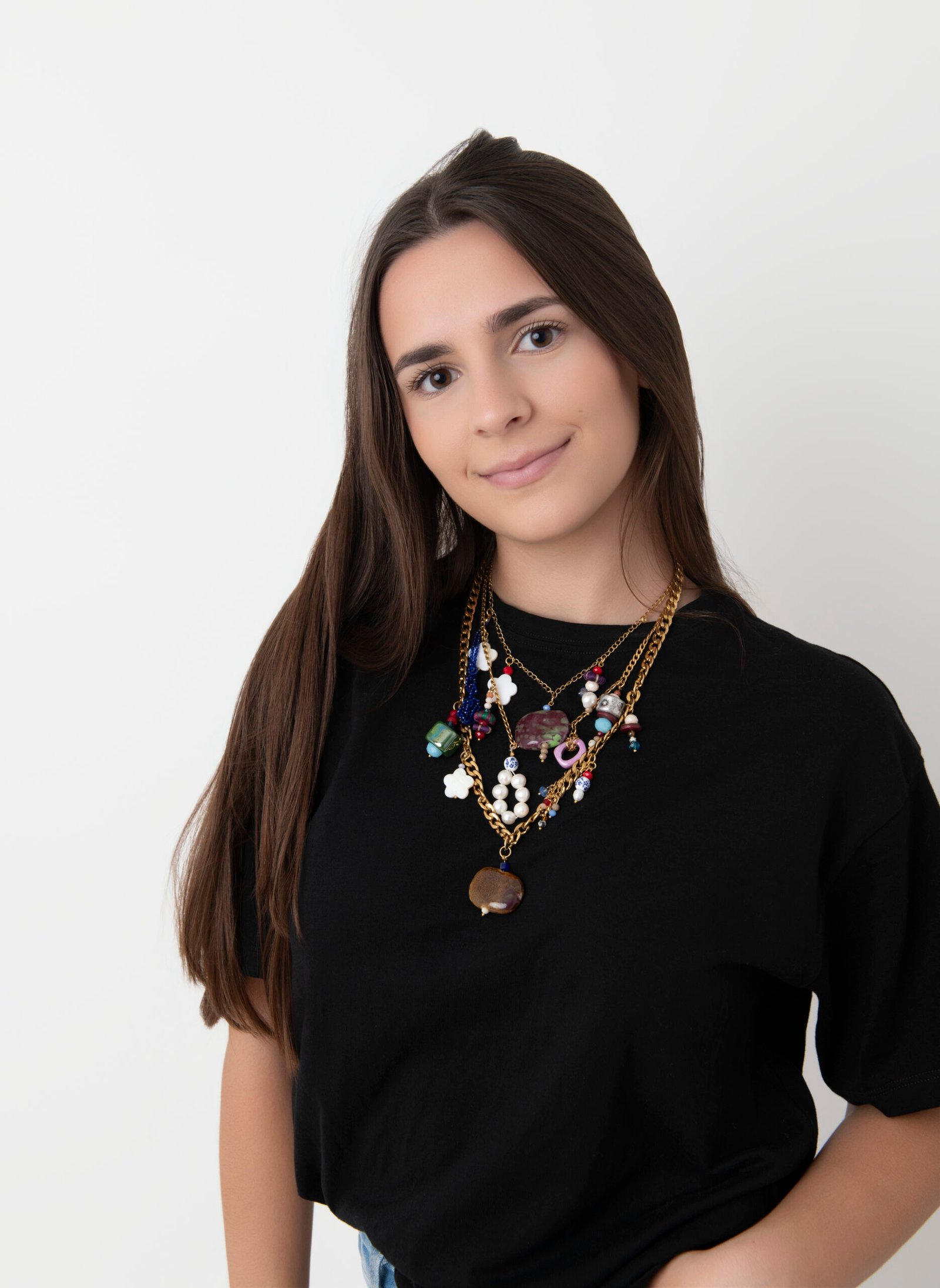 Set of three necklaces in stainless steel, handmade beads of various materials.