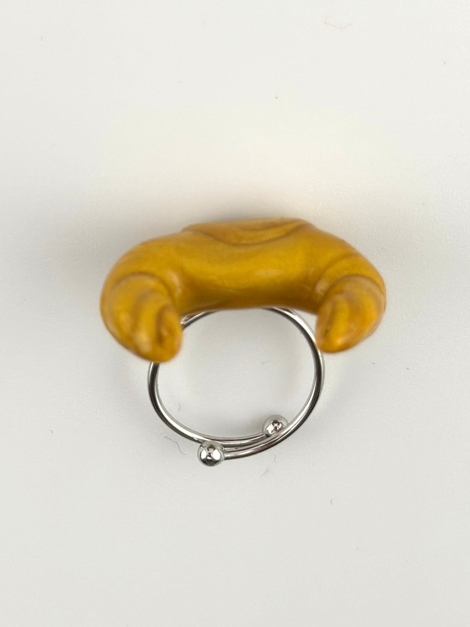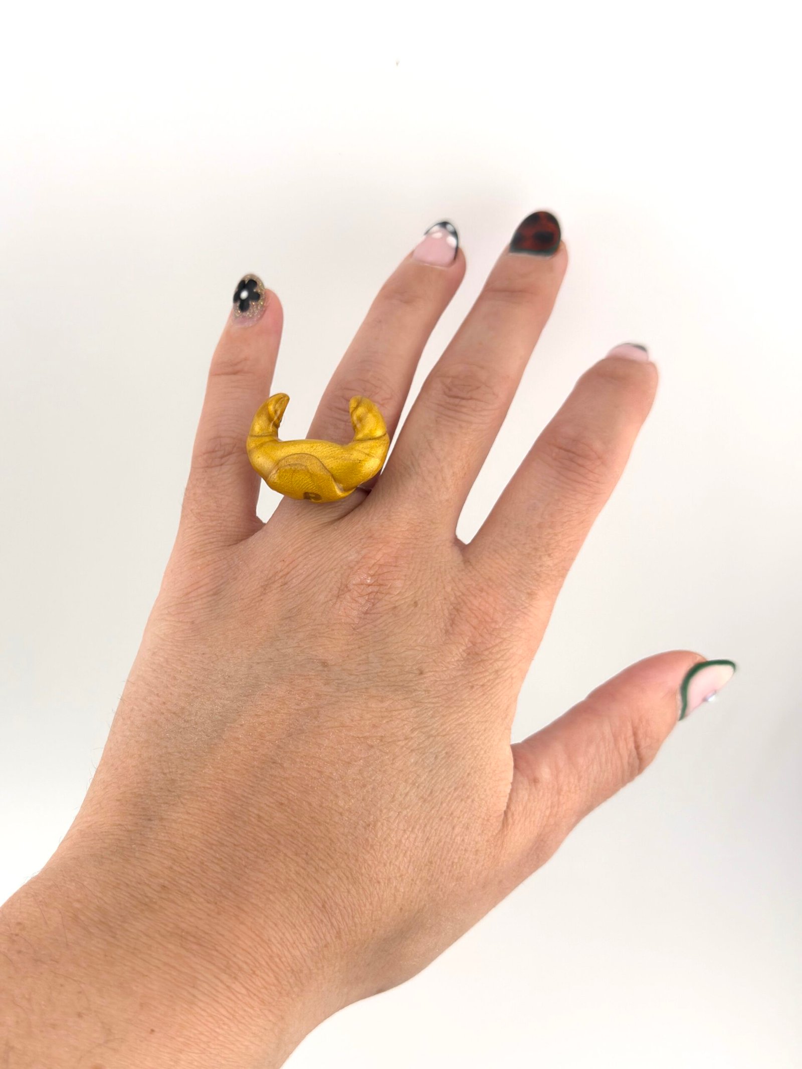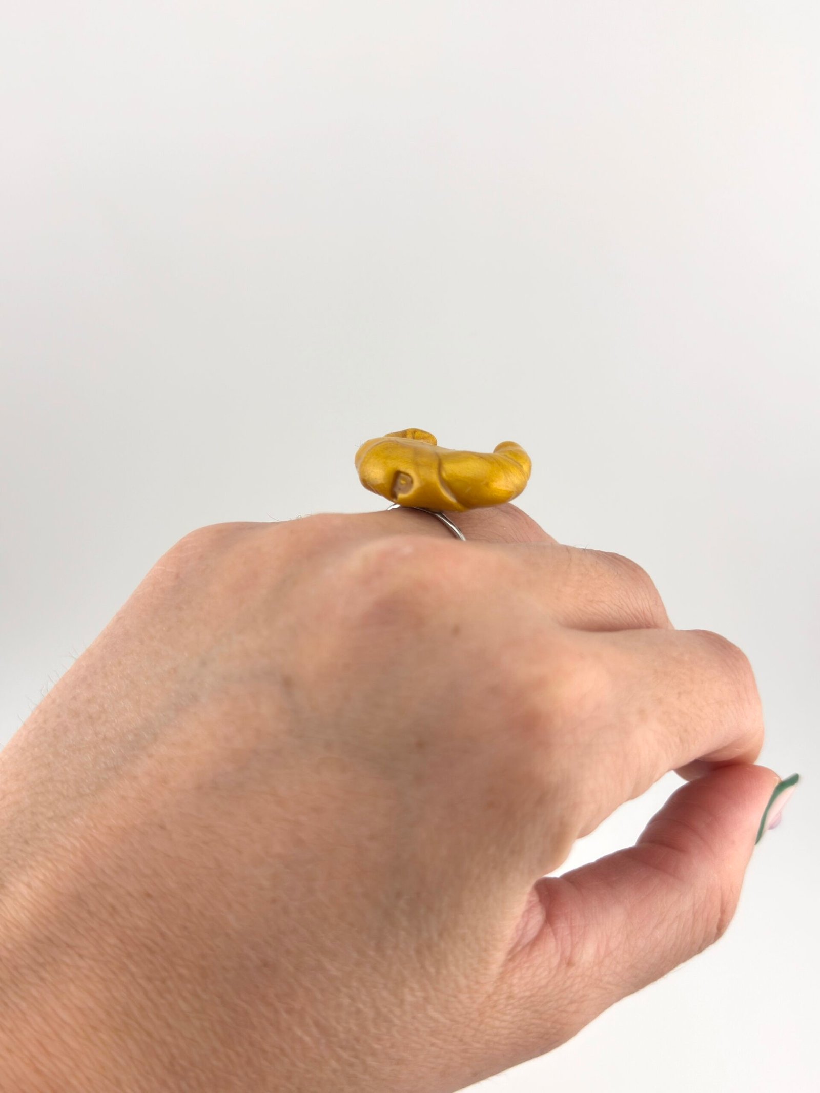 Anillo hecho a mano de arcilla polimérica, plástico reciclado y resinas.