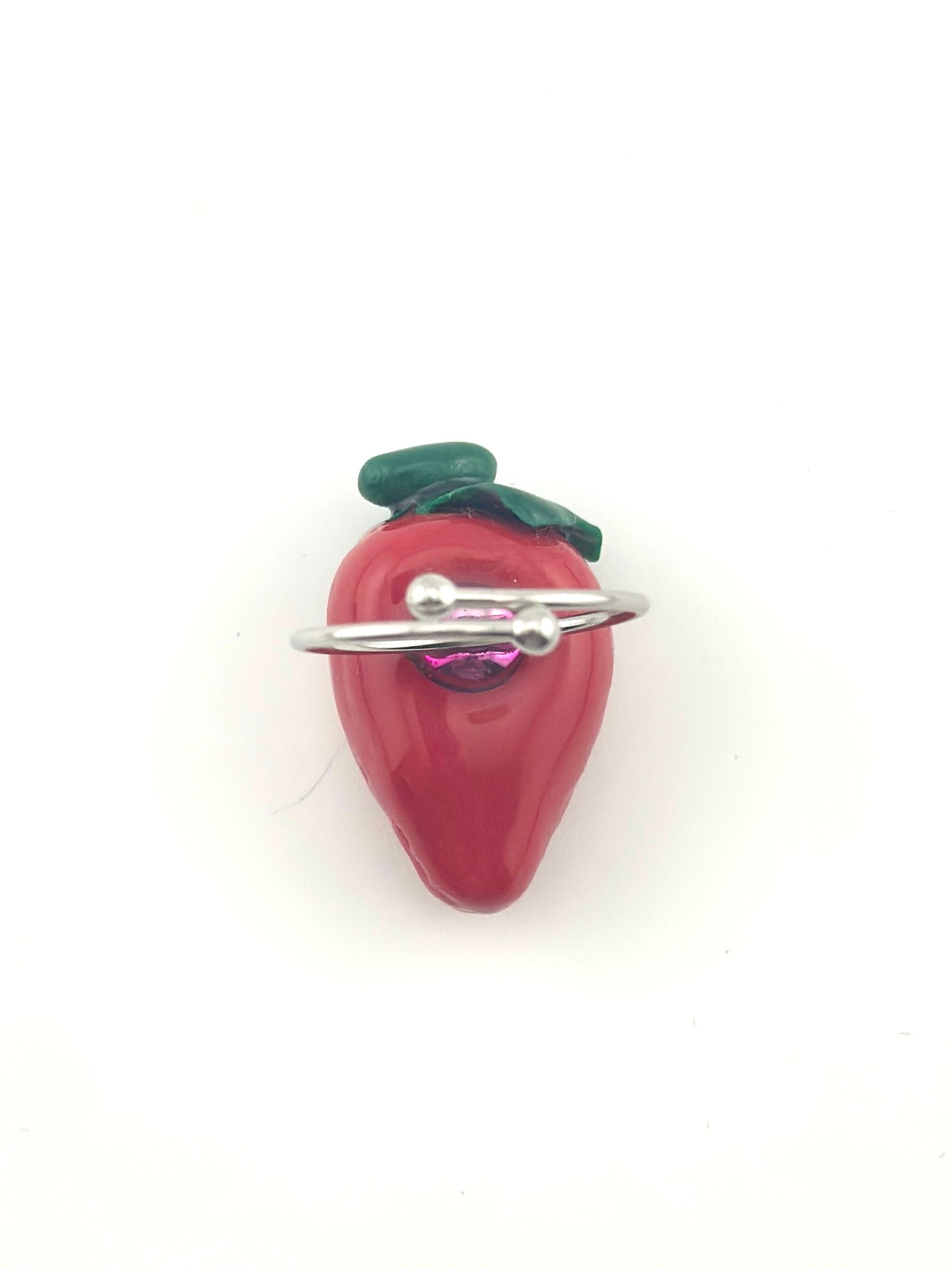 Anillo hecho a mano de arcilla polimérica, plástico reciclado y resinas.
