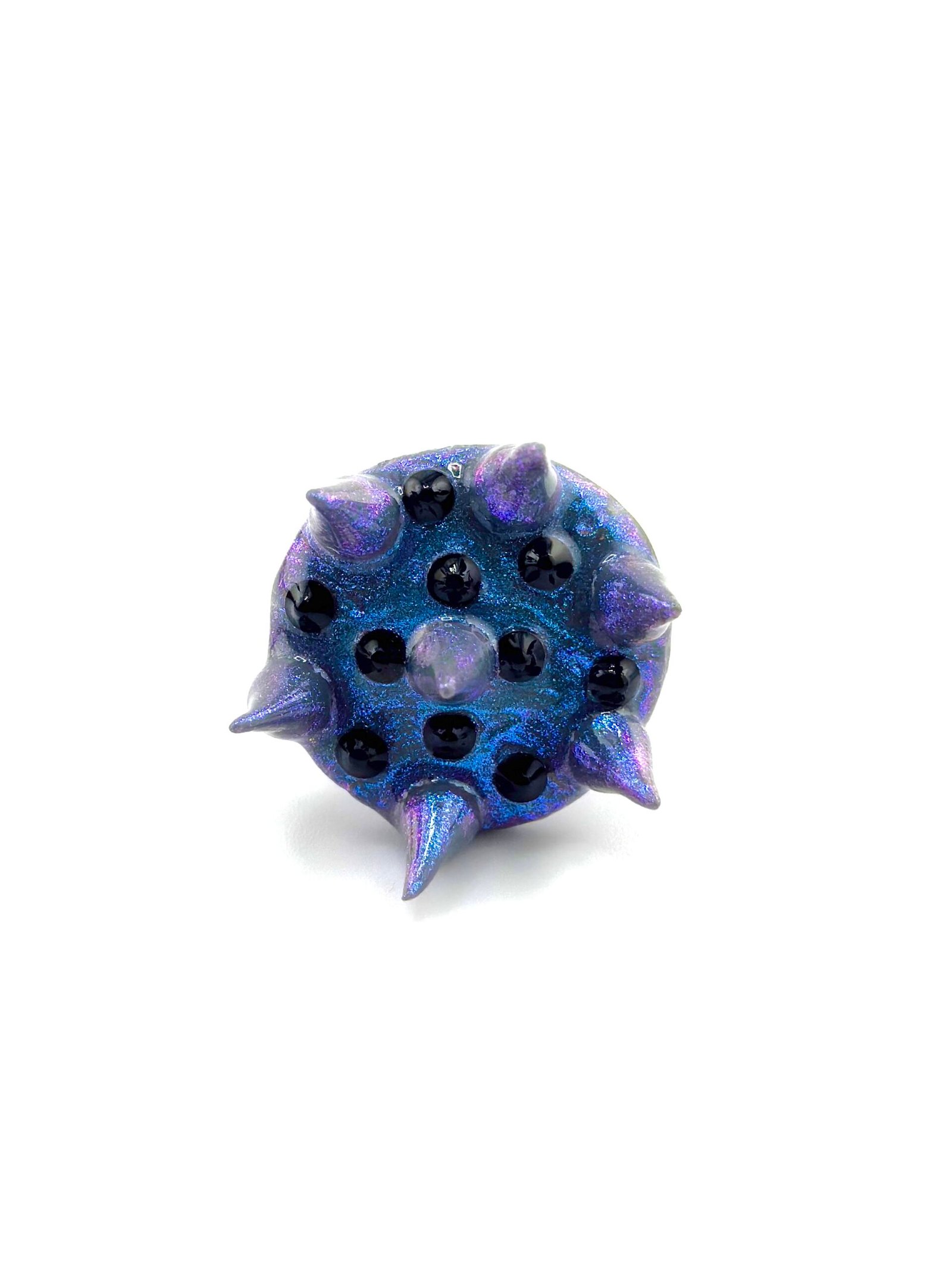 Anillo hecho a mano con arcilla polimérica, plástico reciclado y resina.